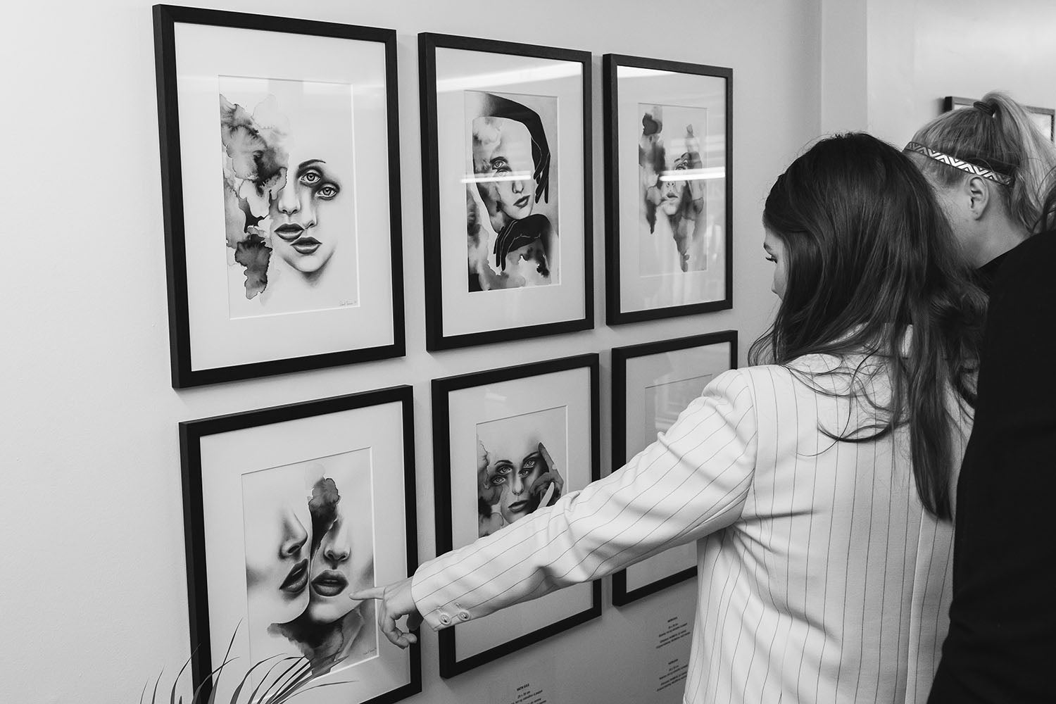 Á sýningunni voru 14 verk – blýantur, kol og vatnslitir á pappír. Allar skissur og minni teikningarnar urðu til á eyjunni Balí í Indónesíu.